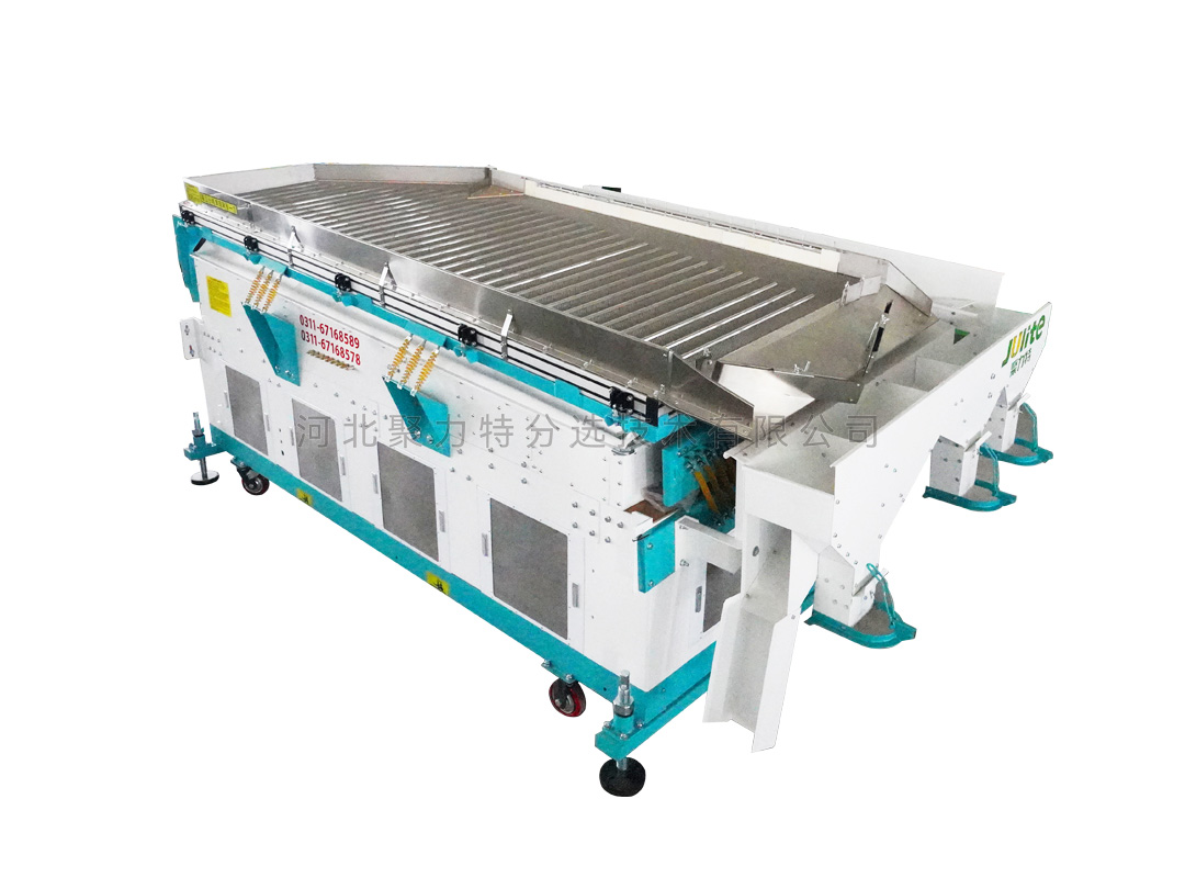 根據(jù)物料在空氣動(dòng)力和振動(dòng)摩擦力的雙重作用下產(chǎn)生比重偏析的原理,通過(guò)調(diào)整風(fēng)壓、振幅等技術(shù)參數(shù),使比重較大的物料沉到底層,靠振動(dòng)篩面產(chǎn)生的摩擦力向高處運(yùn)動(dòng);靠振動(dòng)篩面產(chǎn)生的摩擦力向高處運(yùn)動(dòng),比重較小的物料經(jīng)氣流作用懸浮在表面向低處流動(dòng),以達(dá)到按比重分離的目的。