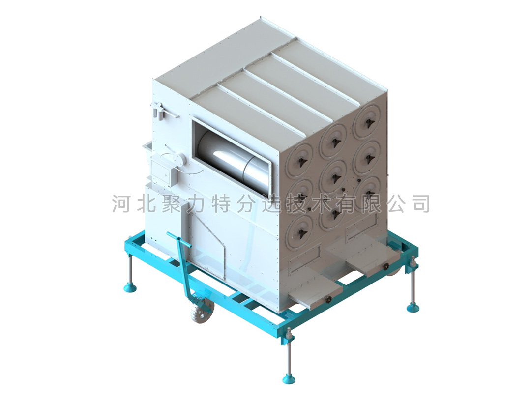 離心風(fēng)機(jī)吹出含塵氣流經(jīng)入風(fēng)口進(jìn)入脈沖除塵箱,由于除塵箱和外部風(fēng)壓差的存在,含塵氣流會(huì)迅速通過脈沖除塵箱內(nèi)3×3均布的9個(gè)濾筒后排入外部空氣中,氣流中的粉塵被阻擋在濾簡(jiǎn)外表面上,排入外部空氣中的則為過濾后的清潔空氣,最終完成含塵氣流的粉塵清除功能。脈沖噴吹控制儀接通脈沖電磁閥定期向?yàn)V筒內(nèi)部噴吹 0.6-0.8MPa 高壓空氣,高壓空氣由內(nèi)向外穿過濾筒,將附著在濾筒外表面上的粉塵除去,塵粒落入下部集塵斗,定期清理。